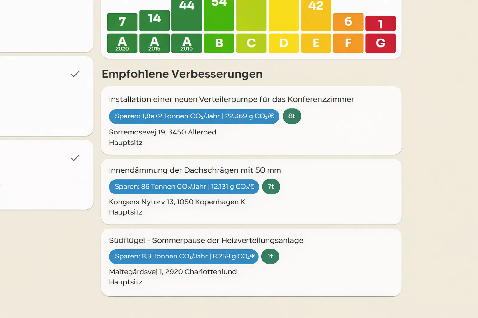 - Forventet CO2-besparelse: Få indsigt i den forventede CO2-besparelse.