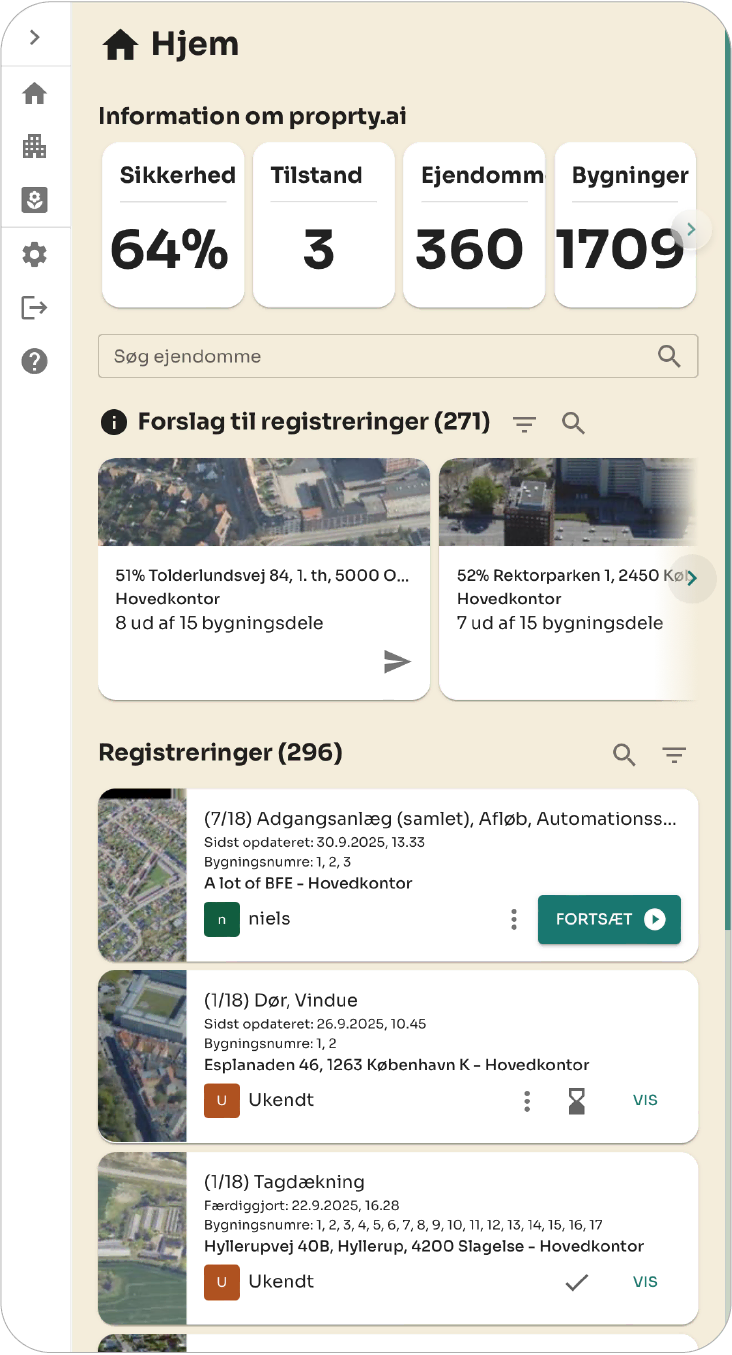 Uanset om du investerer, ejer eller forvalter ejendomme, hjælper proprty.ai dig med datadrevne beslutninger, mindre brandslukning og tydelig dokumentation af resultater.