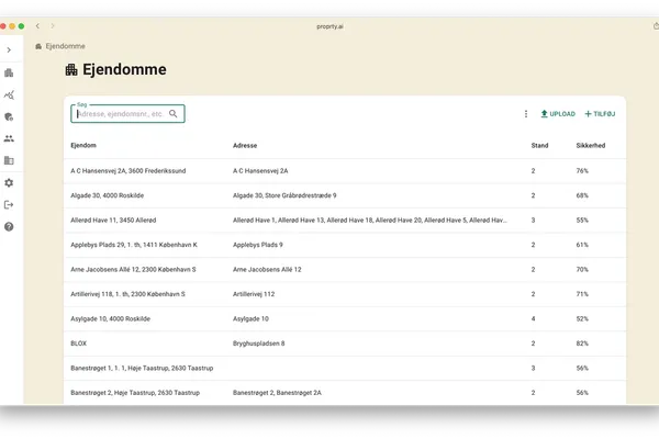 I proprty.ai er tilstandsvurderinger ikke længere et øjebliksbillede, da den kunstige intelligens ugentligt skaber nye forudsigelser. Dette sikrer, at ejendomsejere altid har et aktuelt billede af deres ejendommes tilstand, og at porteføljen konstant overvåges. Dette muliggør datadrevne beslutninger og forebyggende vedligehold, hvilket forlænger levetiden for bygningsdele og undgår følgeskader.