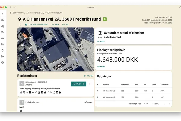 Vedligeholdsplanen spiller også en vigtig rolle, især hvor man ikke har en klar plan for, hvordan man vil vedligeholde alle bygningsdele på ejendommen. Her hjælper proprty.ai med at sikre, at der laves en plan for forebyggende vedligehold på alle bygningsdele, samt at der planlægges større renoveringer eller udskiftninger baseret på bygningsdelenes stand og restlevetid.